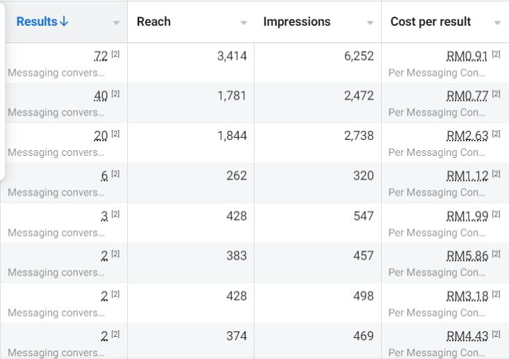 Ini adalah hasil yang saya buat semasa gunakan WhatsApp Business Ads